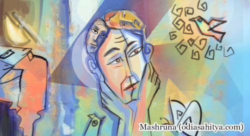 ଏମିତି ଗୋଟିଏ ଭଙ୍ଗାକାଚ ବ୍ୟବସାୟୀର ଘର ସାମ୍ନାରେ ଅନେକ କାଚ ଶିଶି ବୋତଲକୁ ମୁଁ ଏକ ନିଝୁମ ସନ୍ଧ୍ୟାରେ ଦେଖିଥିଲି। ସହକାର ବୃକ୍ଷରେ ସେତେବେଳେ ପେଚକ ସୁମଧୁର..