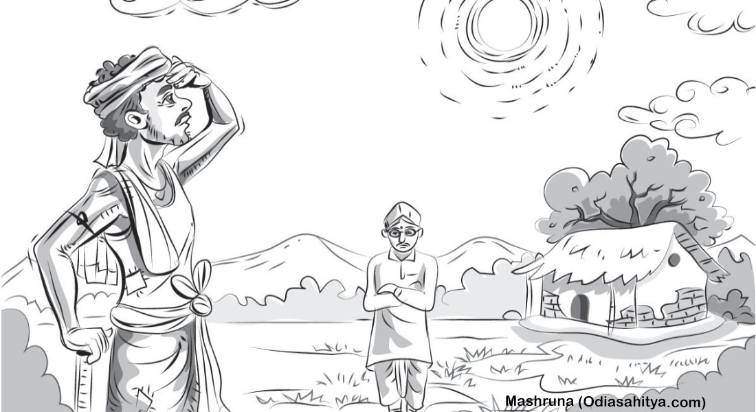କୋଦାଳଟା ଥୋଇ ଜଗୁଆ ଅଣ୍ଟା ସଳଖିଲା। କପାଳ ଉପରେ ବିଶି ଆଙ୍ଗୁଠିଟାକୁ ୱାଇପର ଭଳି ବୁଲାଇ ଆଣି ଜମି ଆସୁଥିବା ଝାଳ ପୋଛୁପୋଛୁ ଆକାଶରେ ସୂର୍ଯ୍ୟଙ୍କ ଅବସ୍ଥିତି ଦେଖି ସମୟ ଜାଣିବାପାଇଁ ଚେଷ୍ଟା କଲା–ନା’ ବେଳ ବେଶୀ ହୋଇନି।