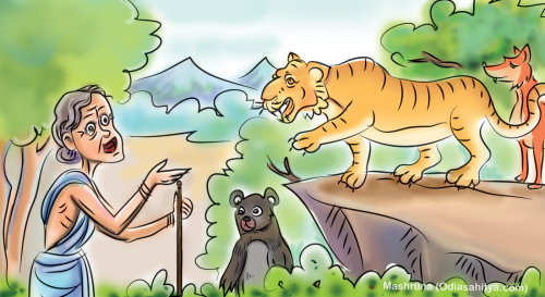 ଦିନେ ବୁଢ଼ୀ ଝିଅକୁ ଡାକିଲା, ଝିଅ ଲୋ! ଆଜି ମୁଁ ଘରକୁ ଯାଆନ୍ତି। କ’ଣ କରିବି? ସେ ଦିନ ତୋ ଘରକୁ ଆସୁଆସୁ ସେ ବନସ୍ତ ଭିତରୁ ବାଘ, ଭାଲୁ, ଗଧିଆ ଏଡ଼େ ଏଡ଼ୁଟାମାନ ଖାଇ ପିଇ ହୋଇଛନ୍ତି, ପଞ୍ଝାଏ ବାହାରି ପଡ଼ିଲେ, କହିଲେ, ତତେ ଖାଇବୁ। ମୁଁ ତାକୁ କହିଛି-ମୋ ଝିଅଘରୁ ମୁଁ ଗଣ୍ଡି କରି ଏହି ବାଟେ ଆସିବି ଯେ, ତୁମେ ମୋତେ ମନବୋଧ କରି ଖାଇବ। ଇଲାଏ ତ ଗଲେ ମତେ ସେ ଜନ୍ତୁଯାକ ବେଢ଼ିବେ। ମୁଁ କି ବୁଦ୍ଧି କରିବି? ୟା’ ଶୁଣି ଝିଅ ଗୋଟାଏ ମନରୁ ପାଞ୍ଚ କାଢ଼ିଲା। ଆମ ଗୁହାଳ ଚାଳରେ ଗୋଟାଏ ରମ୍ଭା ଲାଉଲଟା ମାଡ଼ିଥିଲା ଯେ, ସେଥିରେ ଢିଙ୍କିଆ ଲାଉ ଫଳିଥିଲା। ସେ ଲାଉରୁ ମୁଁ ଚାରିଟା ଲାଉଥାଳ ସାଇତି କରି ରଖିଛି। ସେ ତୁମ୍ବାଟିମାନ କୋଡ଼ମେଇ ଭଳିଆ ହୋଇଛି। ମୁଁ ସେଇଥିରୁ ଗୋଟିଏ ଆଣି ଦଉଛି କି, ତୁ ସେହି ଲାଉତୁମ୍ବୀ ଭିତରେ ପଶ, ପଶି କରି ଗଡ଼ିଗଡ଼ିକା ତୋ ଘରକୁ ଯିବୁ ବାହାରି। ବାଘ ଫାଘ ତତେ କେହି ଆଉ ଚିହ୍ନି ପାରିବେ ନାହିଁ। ଝିଅ ୟା କହି ସବା ବଡ଼ ଲାଉଥାଳଟିକୁ ଆଣି କରି ଦେଲାରୁ, ବୁଢ଼ୀ ସେ ଥାଳ ଭିତରେ ପଶିଗଲା। ଝିଅ ସେ ଥାଳ ମୁହଁଟିରେ ଠିପିଟିଏ ମାରି ମୁଦି ଦେଲା। ମୁଦି କରି ବାପଘର ଗାଁ’ ଆଡ଼କୁ ଗଡ଼େଇ ଦେଲା। ଥାଳଟି ଗଡ଼ିଗଡ଼ିକା ଯାଉଥାଏ।